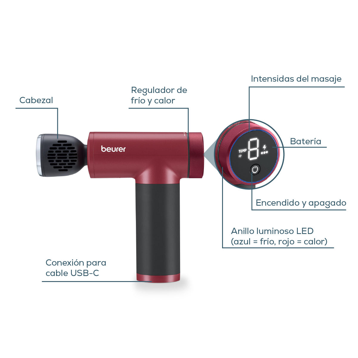 3 niveles de masaje profundo de puntos gatillo, con función de calor y frío