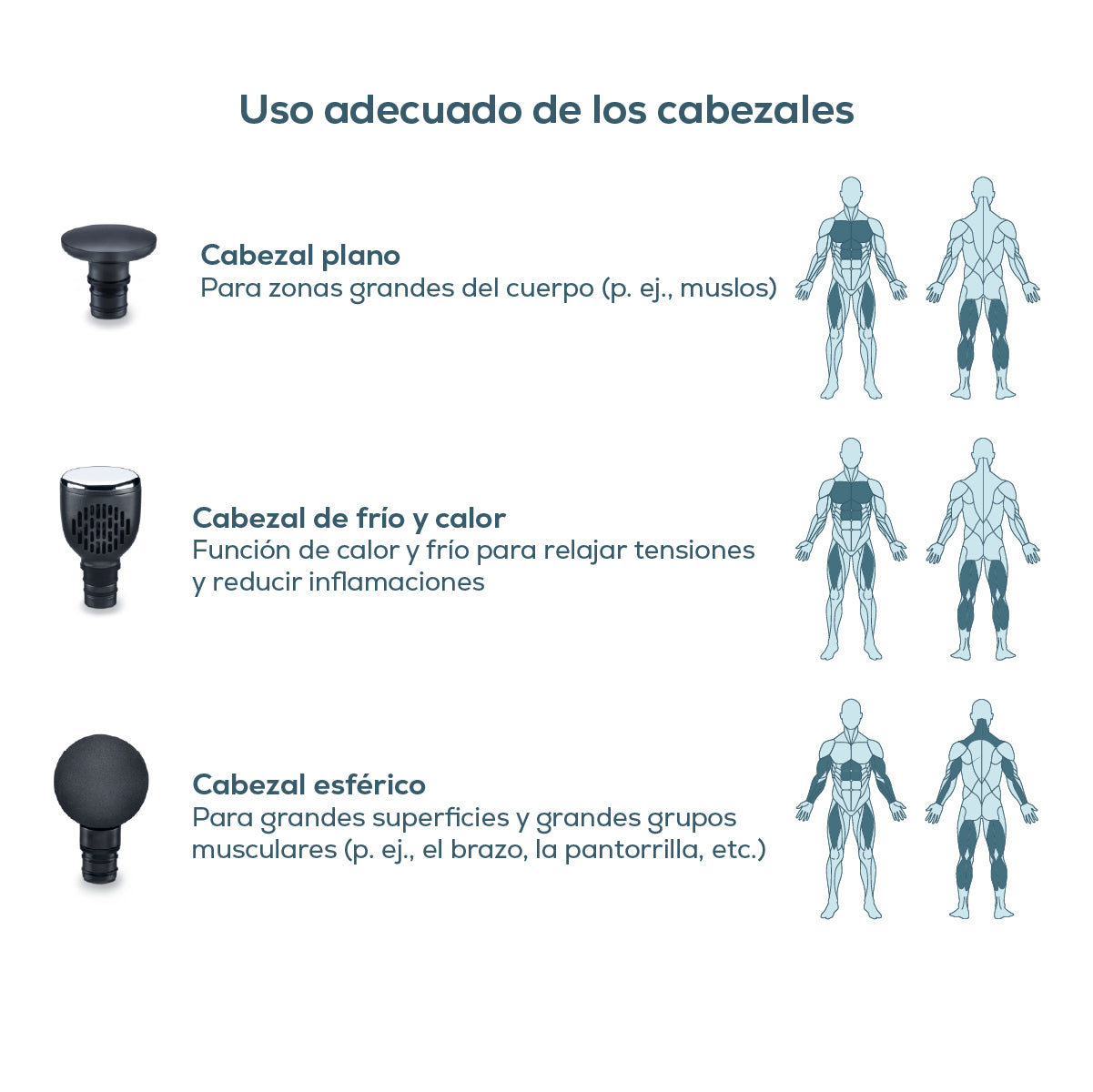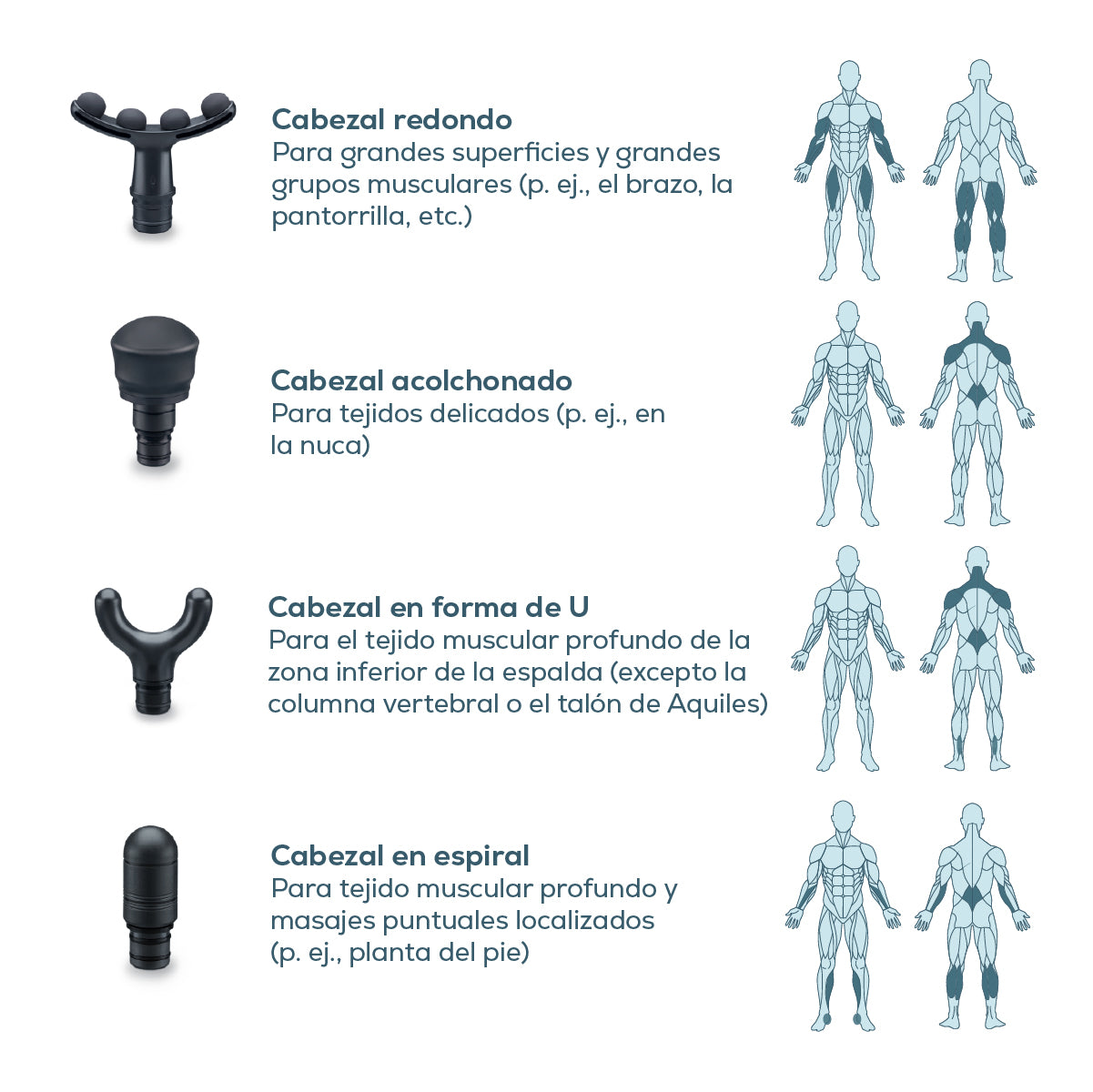 Cabezales intercambiables para un masaje personalizado en cada músculo y necesidad