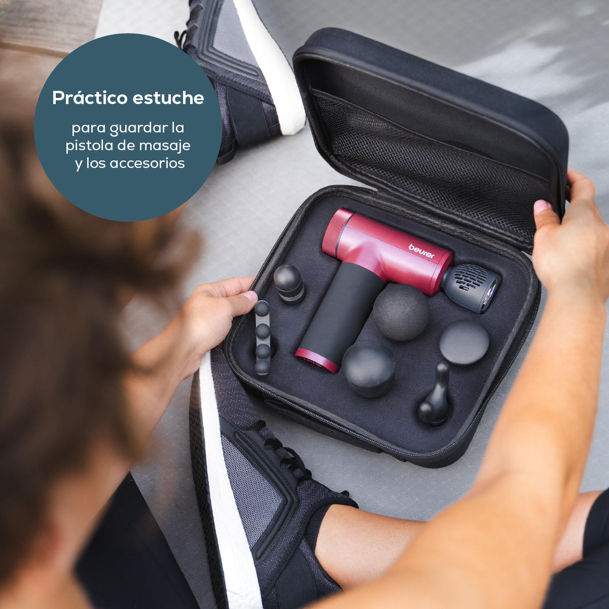 Gracias a su diseño compacto, tu pistola de masaje es fácil de guardar y llevar a cualquier lugar