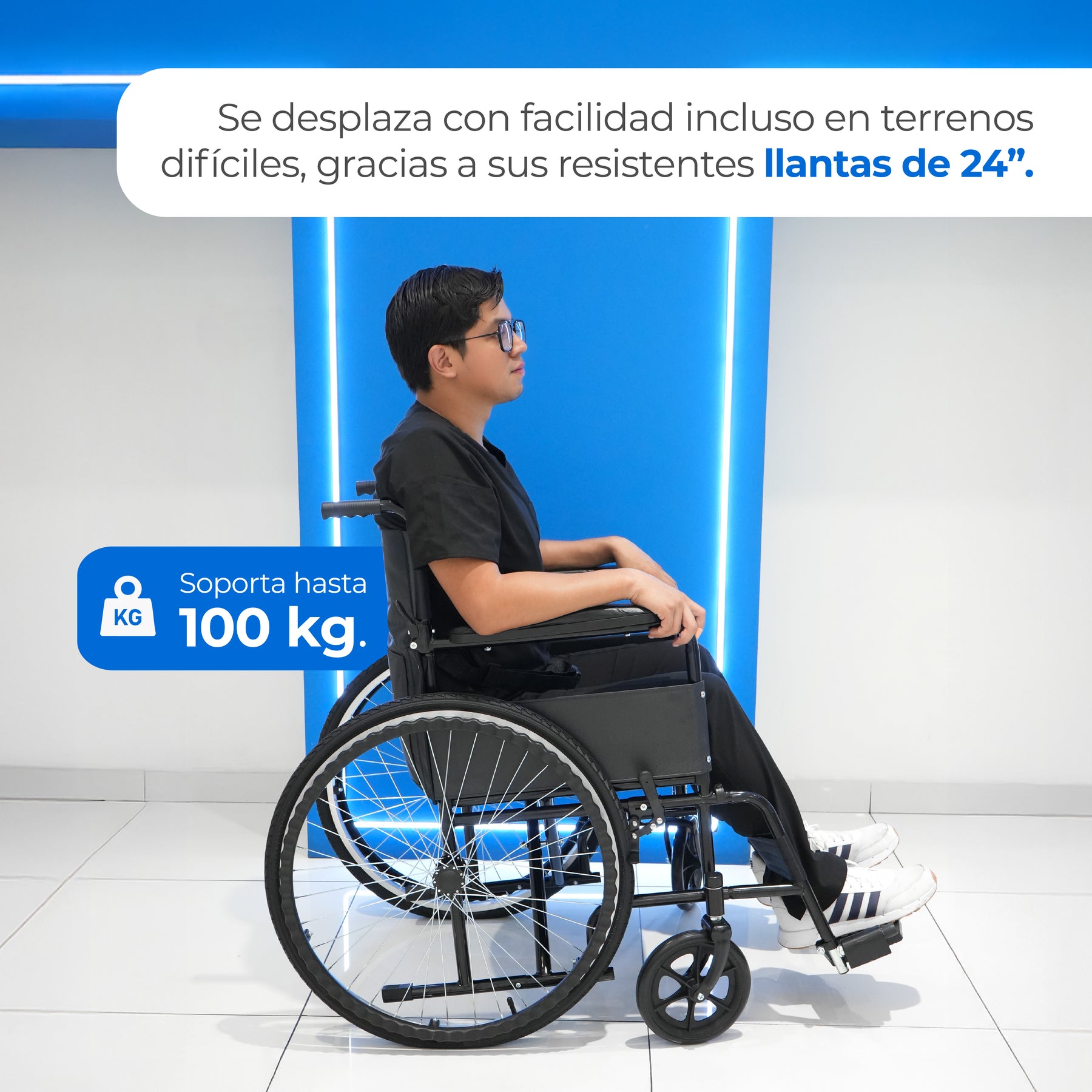 Garantía: 1 AÑODimensiones: ASIENTO 46 CM DE ANCHO Y 24" DE RUEDA TRASERA
