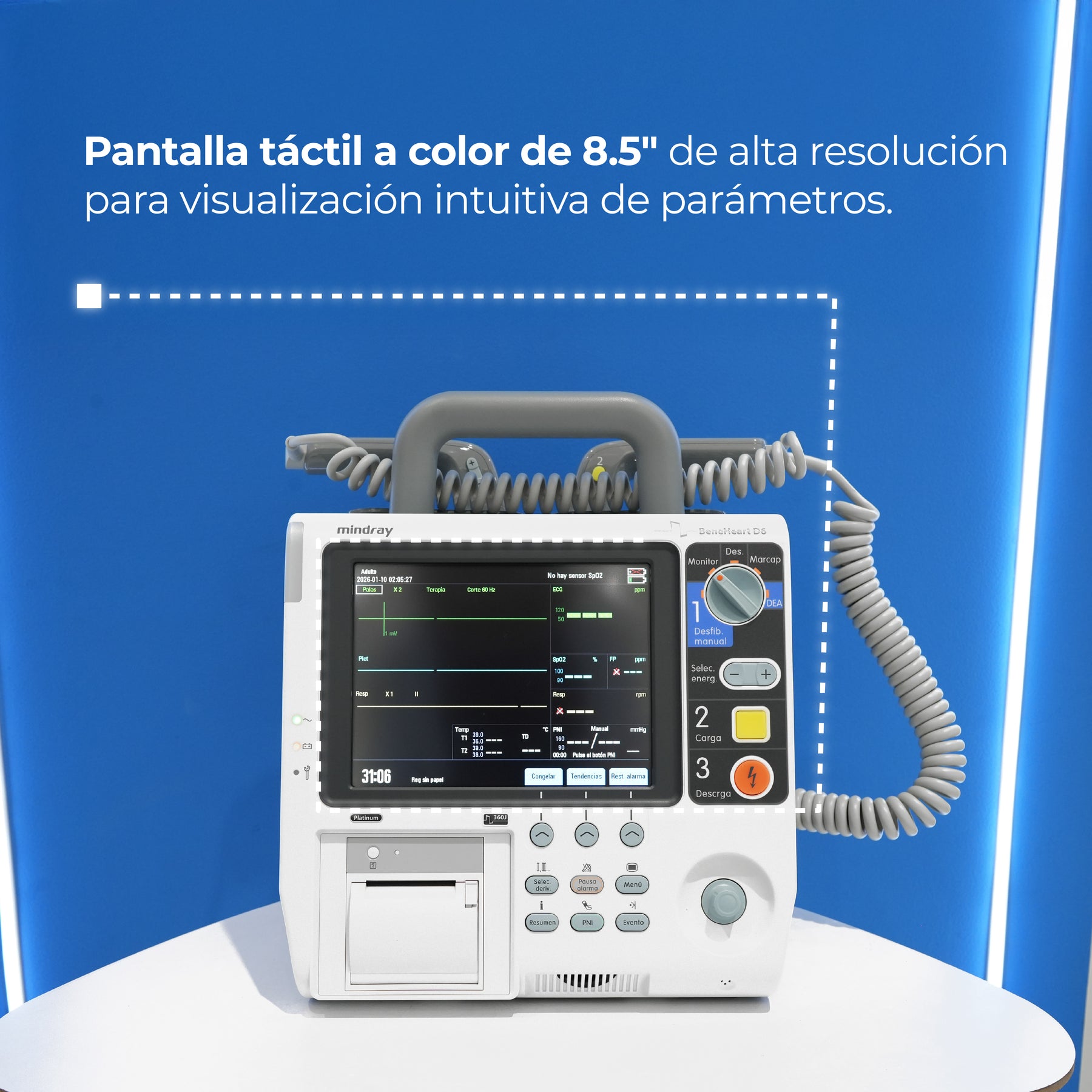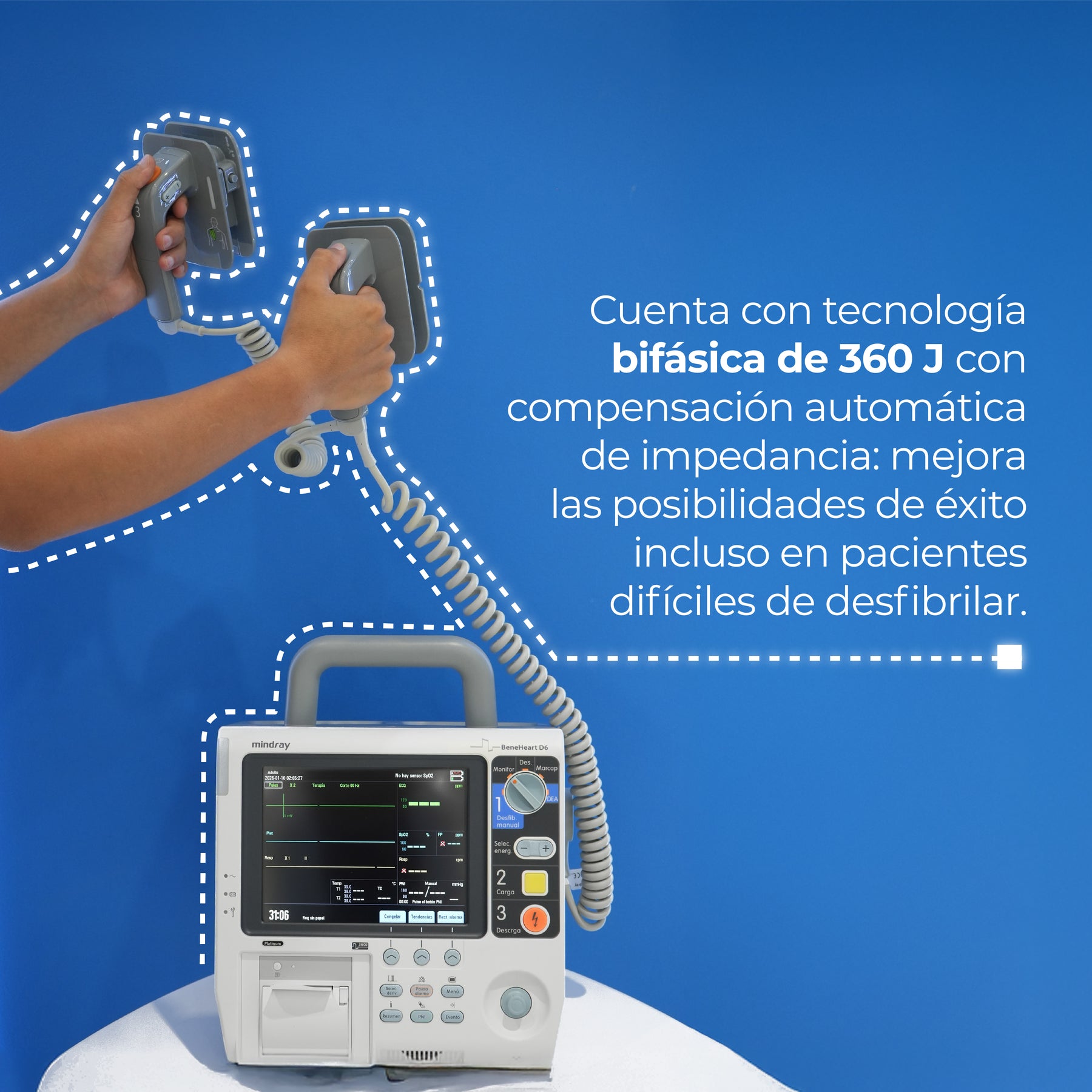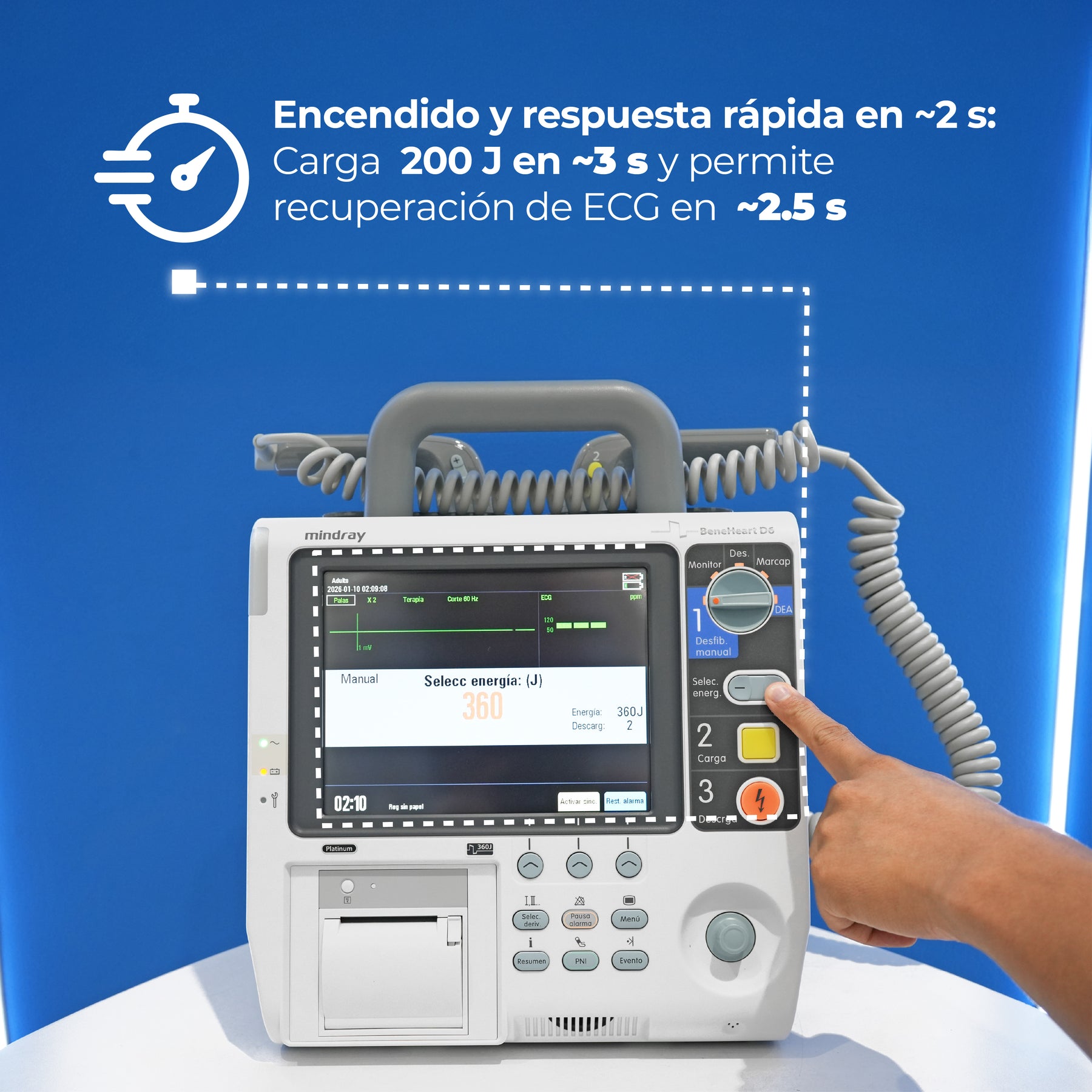 - Hasta 360 J de dosis de energía para maximizar el éxito de la desfibrilación.