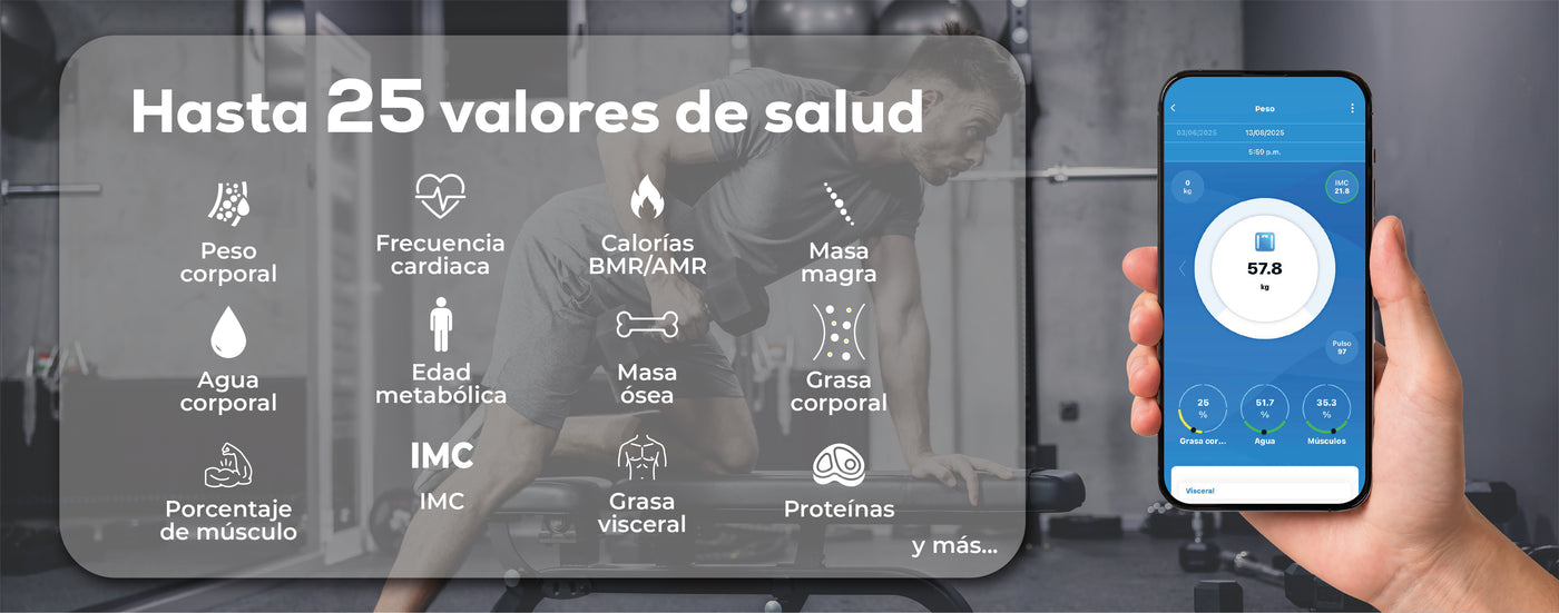 Sincroniza todos tus datos con la app HealthManager Pro y monitorea tu evolución con precisión desde tu celular.