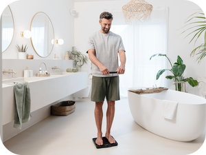 La báscula diagnóstica Beurer BF 990 con parte manual posee 8 electrodos y puede determinar de manera confiable y precisa un total de 25 datos corporales mediante medición cruzada. Todos los datos se pueden transmitir y evaluar rápida y fácilmente en la aplicación "beurer HealthManager Pro". La báscula diagnóstica se integra con su diseño elegante en cualquier baño o puede guardarse de manera compacta gracias a su parte manual retráctil después de su uso.