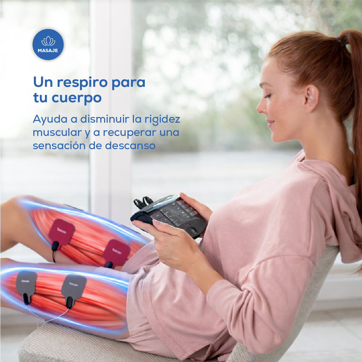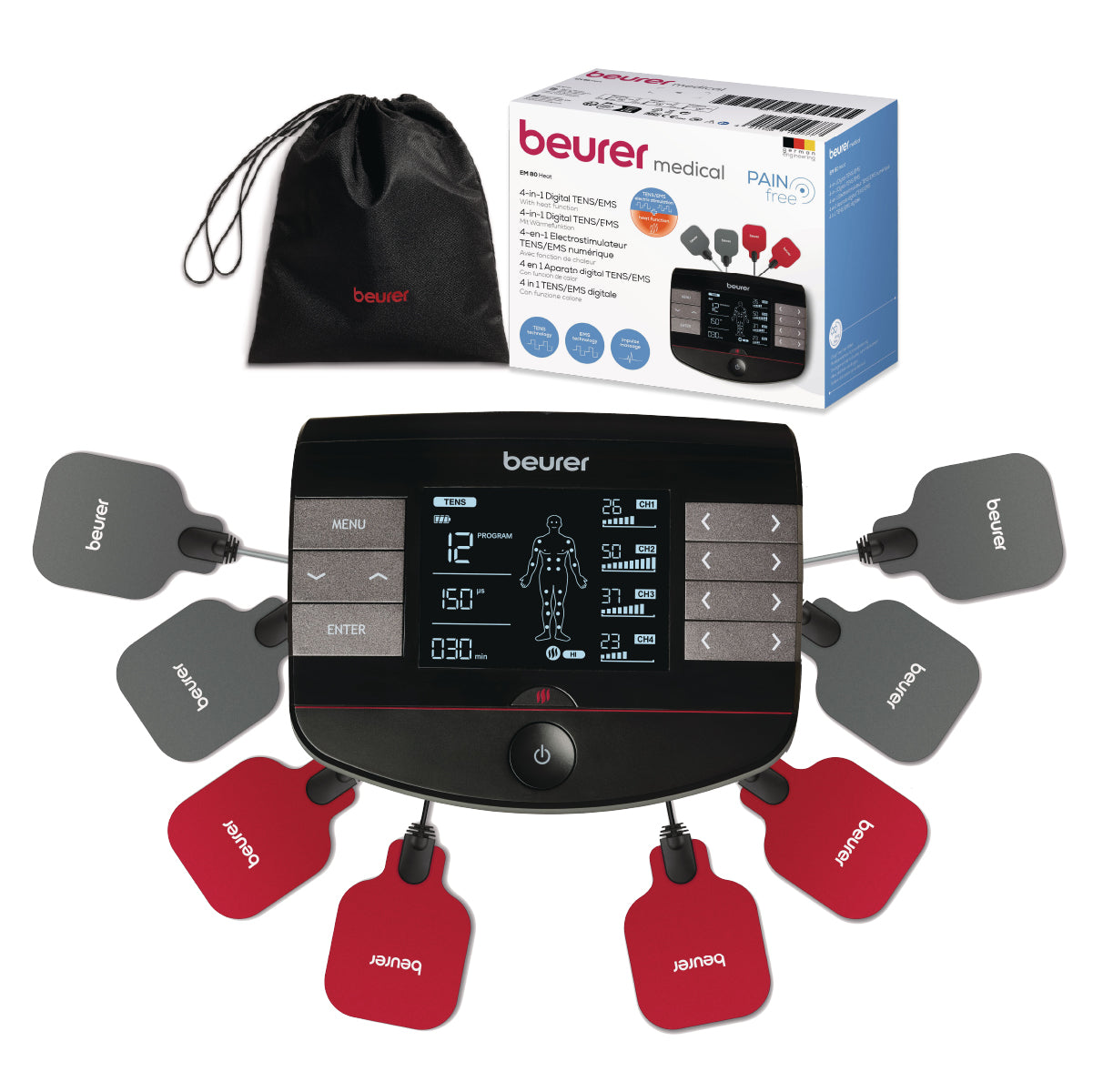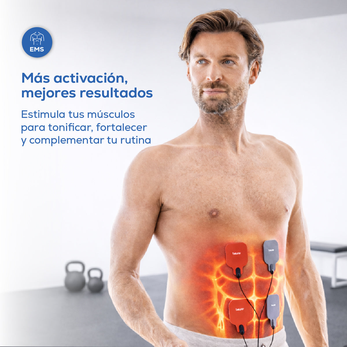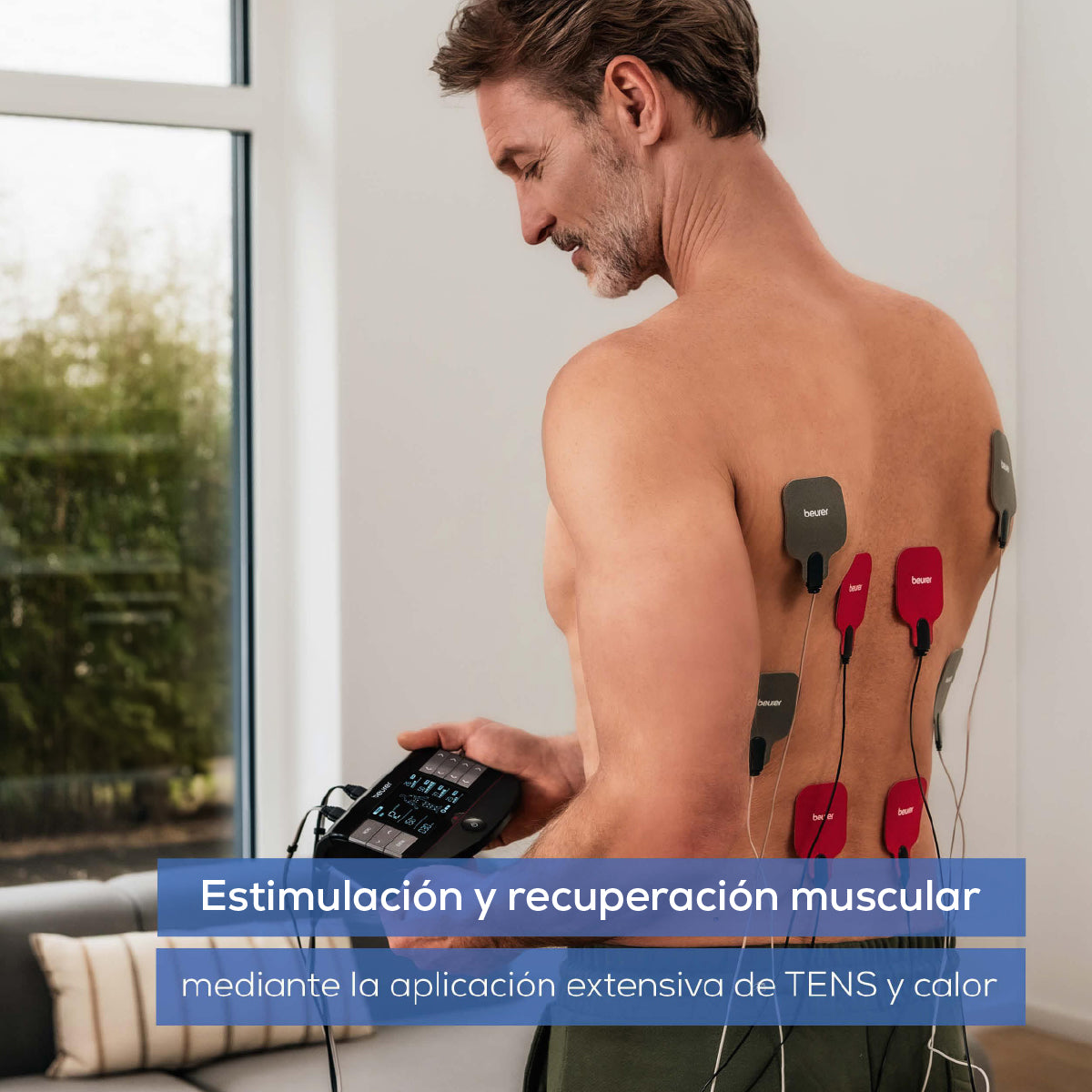 Electroestimulador muscular con función de calor, 3 en 1 (EMS, TENS y masaje) con electrodos de gel y cables incluídos