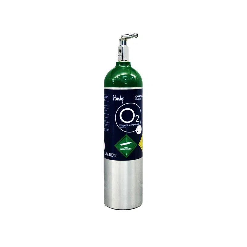 El Tanque de oxígeno de 425 L Handy es un cilindro de oxígeno portátil vacío con capacidad de 425 litros, diseñado para ser llenable en centros autorizados y equipado para su uso con equipos de oxigenoterapia domiciliaria o en traslados. Este cilindro no incluye oxígeno cargado y se entrega vacío para que pueda llenarse según la necesidad del usuario.